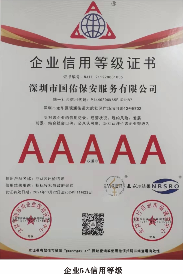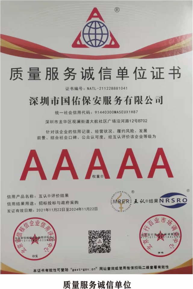 荣誉充分彰显着国佑保安的品牌实力,是对过去努力的肯定,